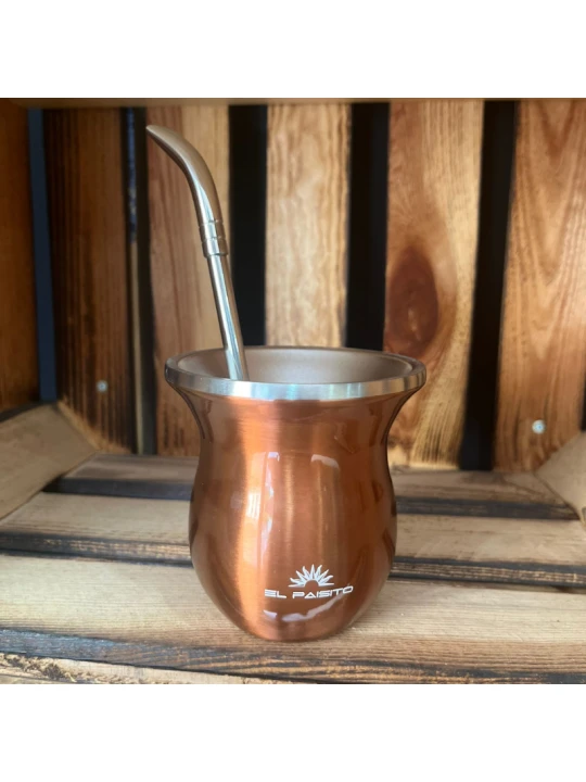 El mate con bombilla porongo de bronce es una elección distinguida para los amantes de la yerba mate que valoran tanto la estética como la calidad. Este set está compuesto por un porongo tradicional elaborado con acero inoxidable de primera calidad y pintado de color bronce, junto a una bombilla diseñada para brindar una experiencia de mate única y auténtica.